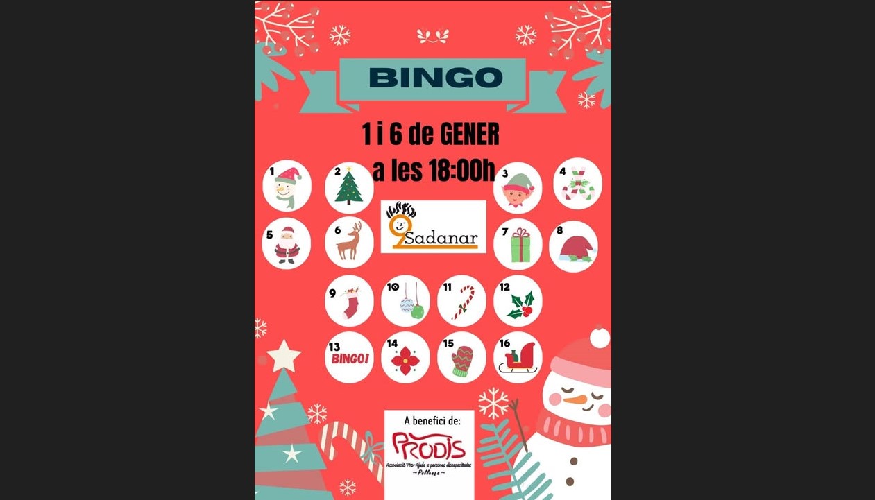 Avui horabaixa al 9 Sadanar darrer bingo solidari de PRODIS d'aquest Nadal. . .