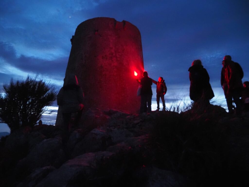 Aquest dissabte 25 de gener, diversos espais del municipi de Pollença es varen il·luminar pels Drets Humans i amb aquesta ja són nou les vegades en què diferents escenaris del poble emeten senyals de fum i de llum per visibilitzar el rebuig a aquells que vulneren els drets humans a la Mediterrària.