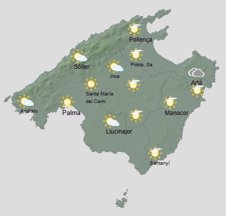Segons l’AEMET, hi haurà intervals ennuvolats amb xàfecs ocasionals que poden anar acompanyats de tempesta i calamarsa petita, més probables fins al migdia. Temperatures amb pocs canvis, però en descens a la nit assolint les temperatures mínimes al final del dia. Vent entre fluix i moderat de component oest amb algun interval fort de matinada, disminuint a la nit a fluix.