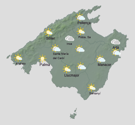 Segons l’AEMET, hi haurà intervals ennuvolats. Temperatures sense canvis o en lleuger ascens. No es descarta alguna gelada feble local principalment a la serra. Vent fluix del sud i sud-est.