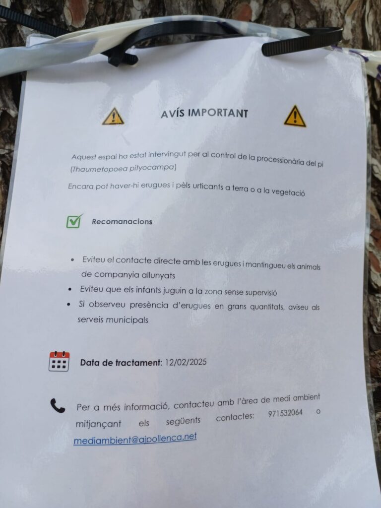 L’Ajuntament ha fet una crida a la precaució tant durant les batudes com en els dies posteriors, atès que encara poden quedar algunes erugues a la zona. Per aquest motiu, s’han col·locat cartells informatius amb recomanacions per a la ciutadania.