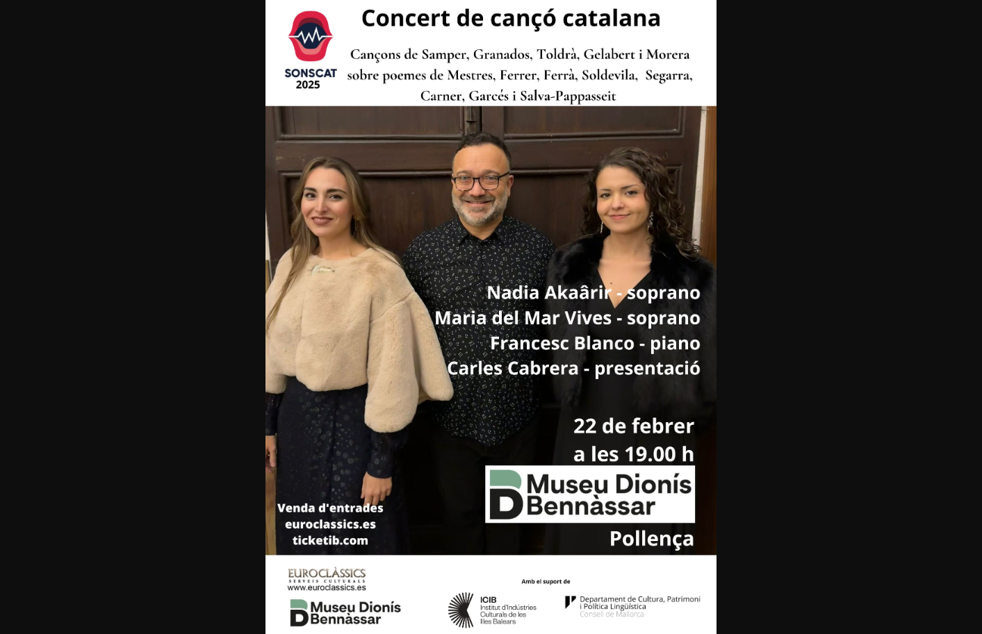 Un recital didàcttic sobre Cançó catalana amb el professor Carles Cabrera, les sopranos Maria del Mar Vives i Nadia Akaärir, i el pianista Francesc Blanco. . .