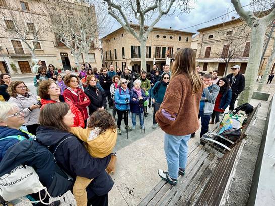 Com a novetat aquesta edició, l’activitat va començar a la Plaça Major, a on a les 10h del matí es va concentrar un bon grup de participants, tot i que el cel ennuvolat amenaçava amb un bon xàfec. Acompanyades des d’un bon principi pels Xeremiers Orats, formació en la qual participen dones tocant les xeremies, el tamborí i el flabiol, es va fer la primera aturada al Convent de Sant Domingo. Allà es va xerrar de la significació de dones viatgeres com Margaret d’Este, que va visitar l’illa a principis de segle junt amb la seva mare Augusta Egerton, qui va ser pionera en el camp de la fotografia retratant espais com la Cala de Sant Vicenç o el Castell del Rei.