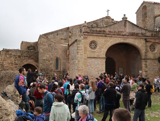 Un pic superats els 330 metres del promontori, es va fer una última explicació recordant els orígens del santuari, que es remunten a la comunitat monàstica del segle XV on varen arribar a conviure 120 dones, i que comptava amb una biblioteca inventariada i un centre educatiu pioner. També es va recordar la relació d’aquest centre espiritual amb el beguinisme, corrent religiosa de dones que volien mantenir-se al marge de la jerarquia eclesiàstica oficial, de la qual Isabel Cifre de Colonya, d’origen pollencí, és una de les màximes exponents.