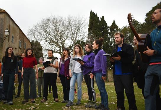 Després d’aquesta darrera intervenció, que recorda que el origen del topònim Puig de les dones està relacionat amb la zona de Can Sales a on varen fer vida hermítica les tres dones que fundaren l’antic monestir – la més famosa de les quals és na Flor Ricomana – de forma miraculosa va sortir el sol. Seguidament, el cor de Sa Corrala va entonar El Cant de lluita de la formació musical femenina Roba Estesa, que comença “Som en acte de protesta, som mans fredes vora el foc, som la veu de la revolta, netes de la por i el dol”. Altres assistents es varen animar a intervenir, cantant algunes de les glosses que Maria Magdalena Amengual va escriure expressament per l’esdeveniment, i altres assistents es varen atrevir a un combat de glosses espontani.
