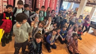 Els alumnes de primer d’Educació Primària del CEIP Costa i Llobera conegueren com es fabriquen les teles de llengües de forma artesanal a Teixits Vicens.