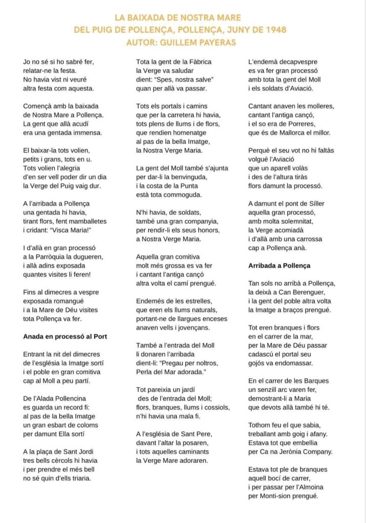 En motiu de l’any jubilar, dia 26 d’abril, la Mare de déu del Puig baixarà al poble de Pollença, on romandrà fins al 8 de juny, visitant els nuclis del municipi.