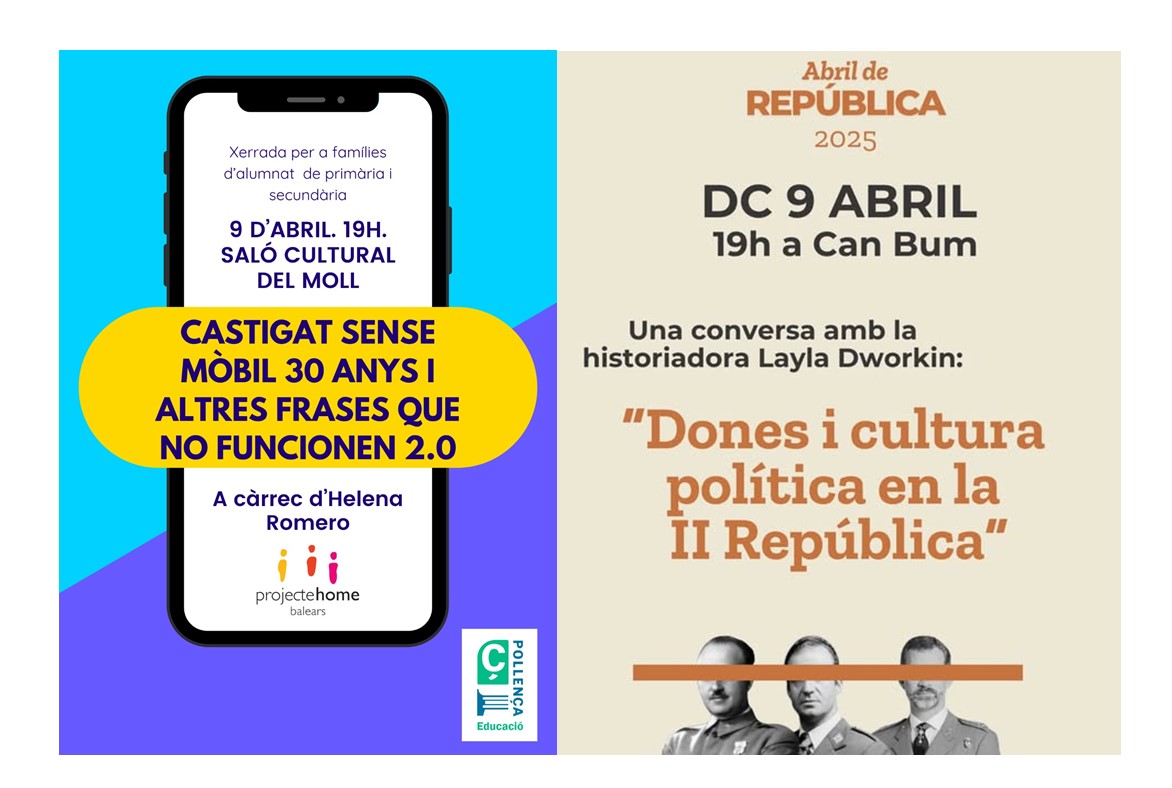 Avui dimecres, a Pollença, es parlarà de dones i República i al Moll, del “càstig” 30 anys sense mòbil