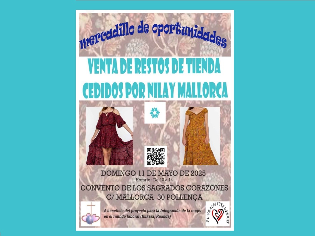 El proper diumenge, 11 de maig, entre les 10 i les 14 hores, el Convent dels Sagrats Cors (carrer Mallorca, 30 – Pollença) acollirà un mercadet d’oportunitats amb roba restes de la botiga Nilay Mallorca.