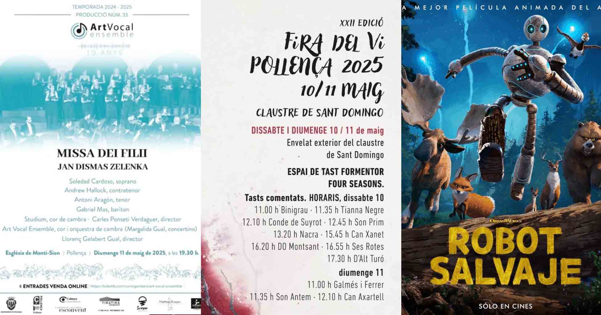 Avui, diumenge 11 de maig, l’agenda inclou música, cinema i vi.