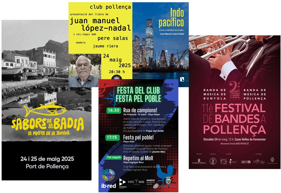 Música de banda, festa del futbol per l'ascens del primer equip del Pollença i Port FC, presentació i debat sobre geopolítica al Club i Fira de la tonyina al Moll. . .