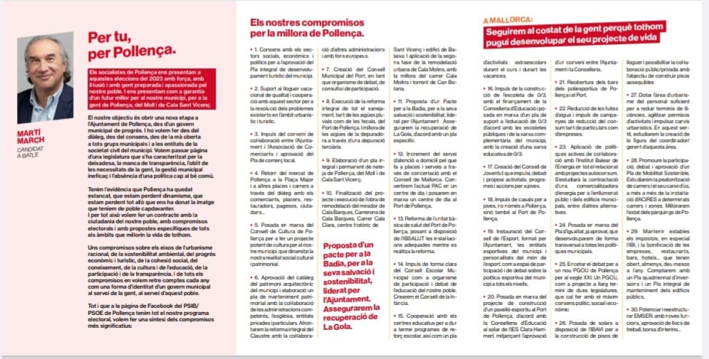 El pacte de govern entre el PSOE i MÉS incloïa, com a darrer punt, la validació dels programes electorals de totes dues formacions. Per tant, aquests documents constitueixen una referència clau a l’hora de valorar amb rigor l’evolució de la legislatura.