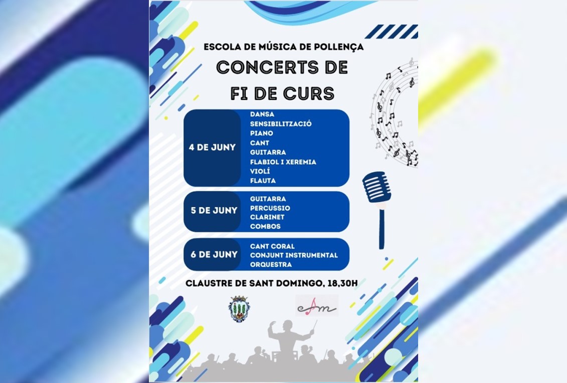 L’Escola de Música celebra el final de curs amb concerts que faran els dies 4, 5 i 6 de juny, a partir de les 18’30 hores, al Claustre de Sant Domingo de Pollença.