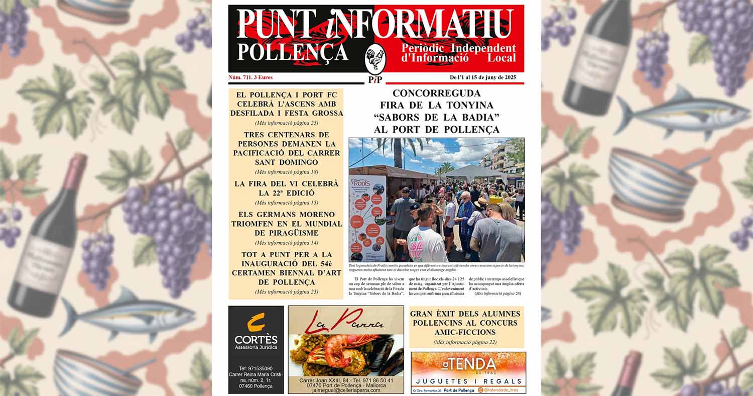 Avui ha arribat a les cases i negocis dels subscriptors el número 711 del Punt Informatiu Pollença, exemplars que també es poden adquirir a papereries, estancs, benzineres i botigues del municipi per 3 euros.