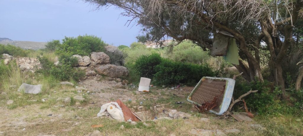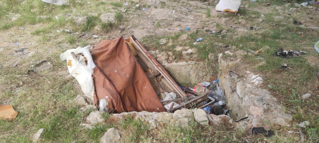 Com podeu veure a les fotografies i el vídeo la part excavada del jaciment es troba ple d’escombraries amb un abocament que ha deteriorat la bóta. Aquesta situació no és nova. Ja el 2017 i 2018 vam documentar deixalles al mateix lloc, sense que s’hagin pres mesures efectives per evitar-ne el continuat deteriorament del jaciment.