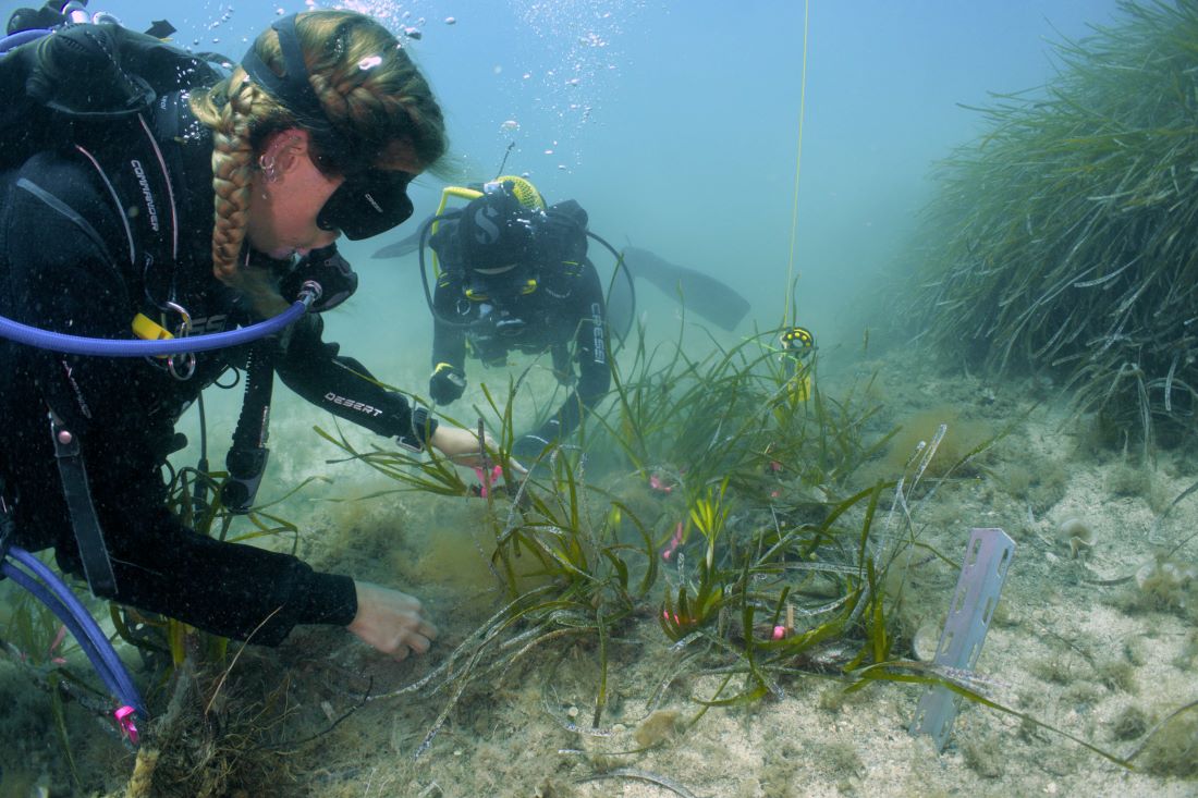 Arrels Marines inicia una nova replantació experimental de posidònia a cala MurtaP+