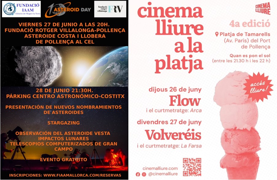 A les 20 hores, a la Sala d’Actes de la Fundació Rotger Villalonga, dos membres de la Fundació de l’Institut d’Astronomia i Astronàutica de Mallorca (FIAAM), Salvador Sánchez i Juan San Nicolàs, faran una conferència que duu per títol sobre “Costa i Llobera: de Pollença al cel”.