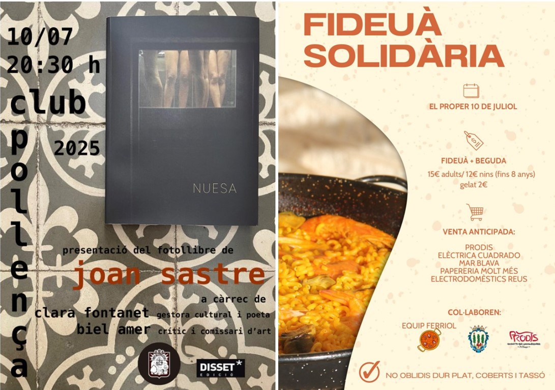 Al Club Pollença, es presenta "Nuesa" del fotògraf Joan Sastre i, al Moll, continuen les Festes del Carme amb la Fideuà Solidària, entre altres activitats. . .