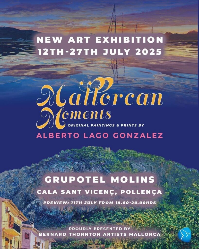 El pintor cubà afincat a Pollença, Alberto Lago González, inaugura “Mallorca Moments” a l’Hotel Molins de la Cala Sant Vicenç.