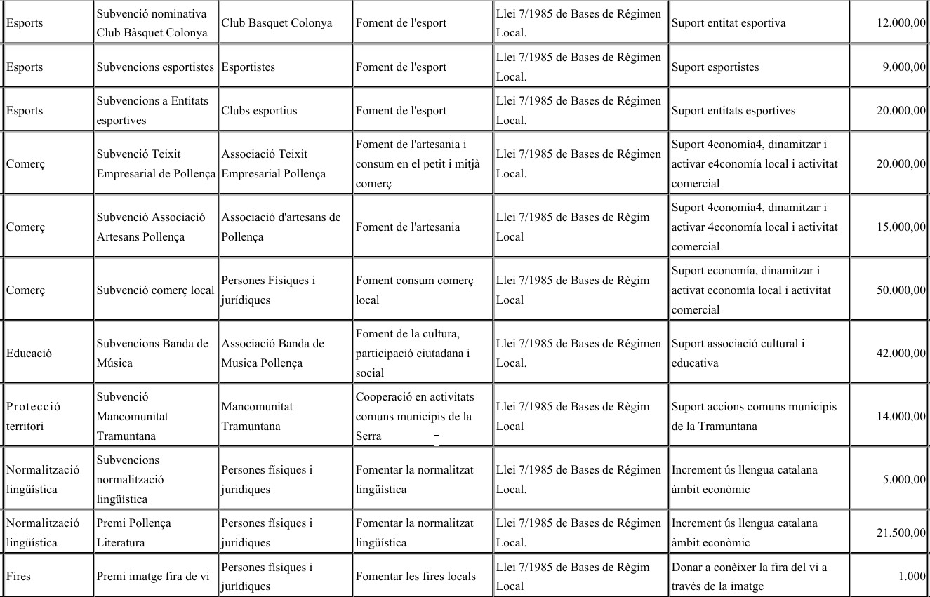 Al BOIB d'avui, es publica la relació d'ajudes del Pla Estratègic de Subvencions que concedeix l'ajuntament de Pollença. . .