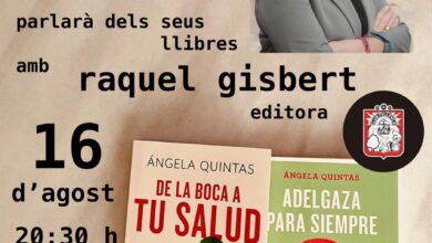 a famosa nutricionista Ángela Quintas i l’editora Raquel Gisbert parlaran sobre nutrició en una saludable conversa oberta a tothom que hi estigui interessat.