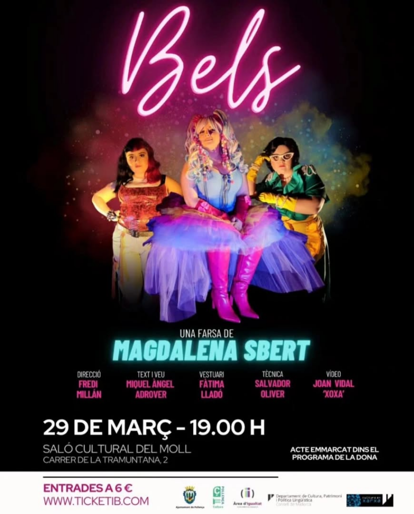 A les 19 hores, al Saló Cultural del Port de Pollença i dins el marc de les activitats amb motiu del Mes de la Dona, Magdalena Sbert donarà vida a Bels, un muntatge teatral alegre, divertit i histriònic escrit amb Miquel Àngel Adrover i dirigit per Fredi Millán.