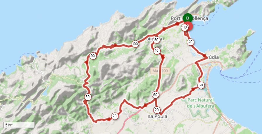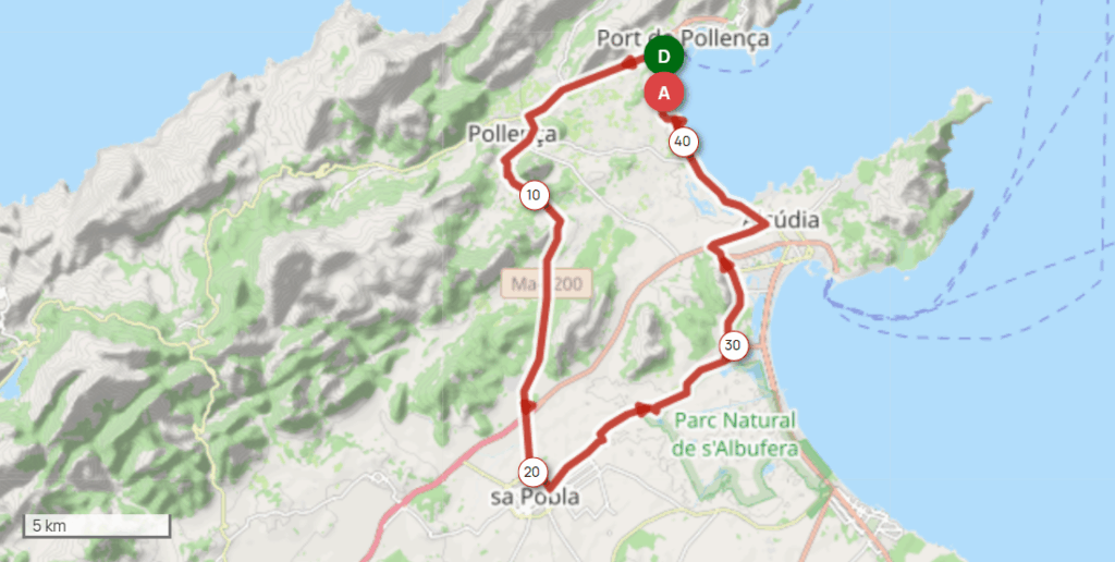 • Circuit de 42,7 km amb afectació a l’entorn del Port de Pollença i al nucli urbà