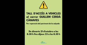 Demà es tallarà l’accés al carrer Guillem Cerdà Cànaves durant dos dies