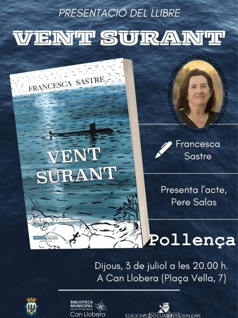 I, a les 20 hores, a Can Llobera, hi haurà la presentació de la novel·la Vent surant de Francesca Sastre (Documenta Balear, 2024). A més de l’autora, la presentació anirà a càrrec del pollencí Pere Salas.