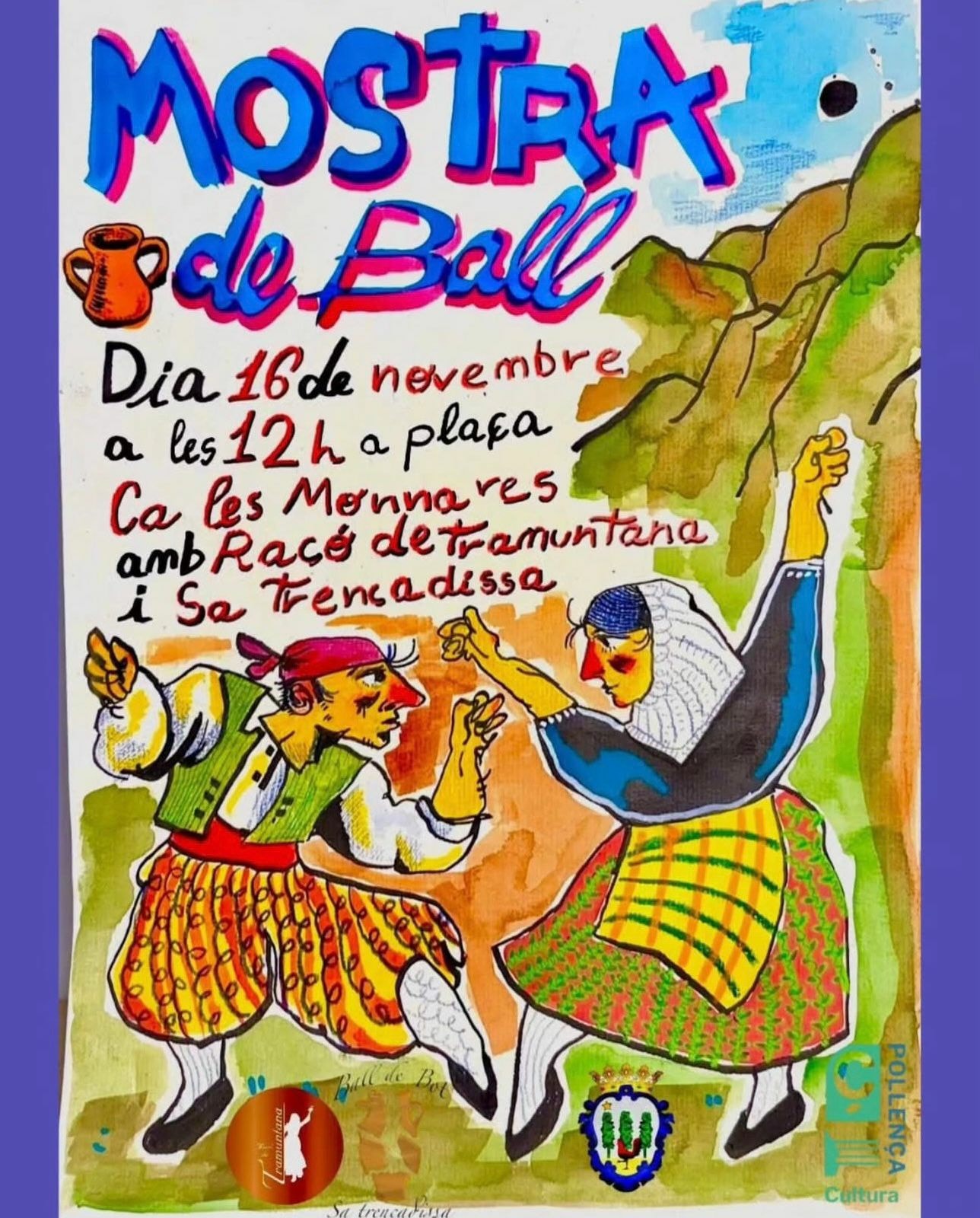 Aquest diumenge, 16 de novembre, a partir de les 12 hores, a la plaça de ca les Monnares, hi haurà mostra de ball a càrrec de dels pollencins Racó de Tramuntana i dels vilers Sa Trencadissa.