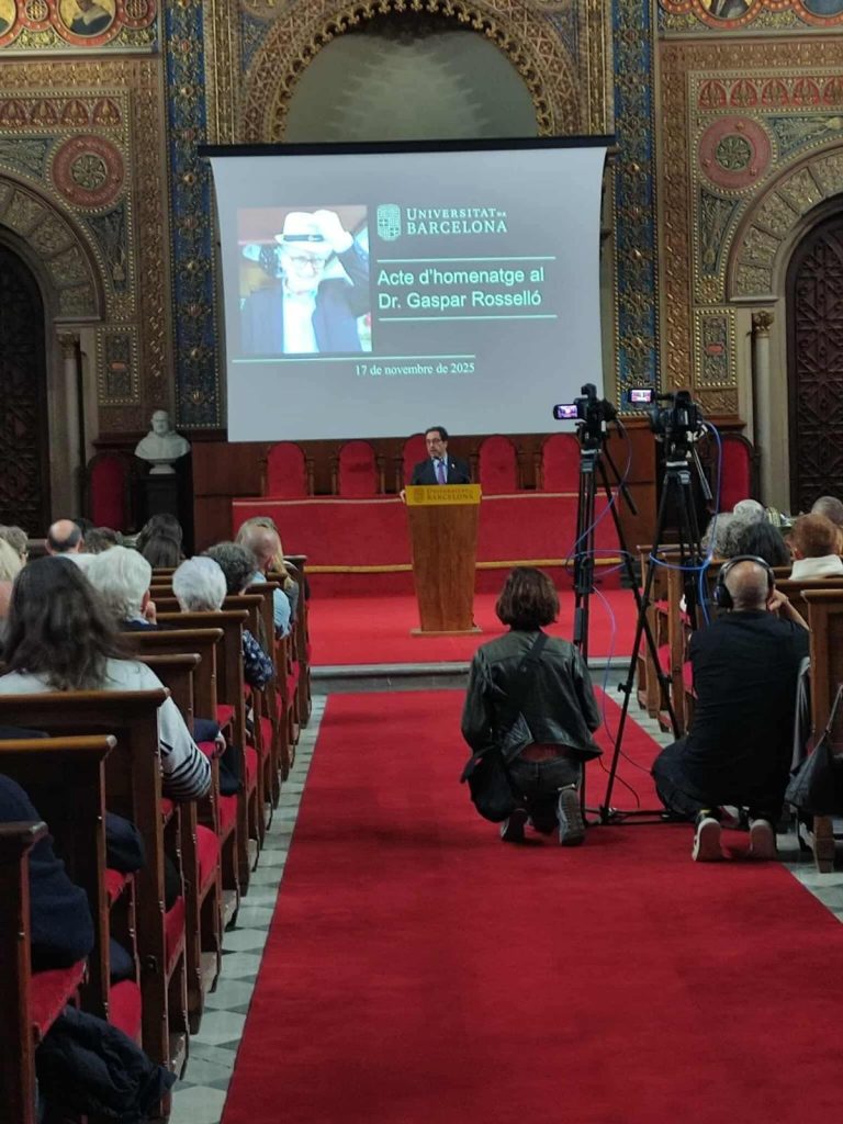 “Qui va conèixer Gaspar Rosselló sempre el recordarà. Però la memòira de la bona gent, no es pot perdre; la memòria de la feina ben feta, no es pot perdre; la memòria de tants d’anys de dedicació, no es pot perdre” amb aquestes paraules el Rector de la Universitat de Barcelona, Joan Guàrdia, va tancar el sentit acte d’homenatge a Gaspar Rosselló que se celebrà ahir horabaixa a la mateixa Universitat.