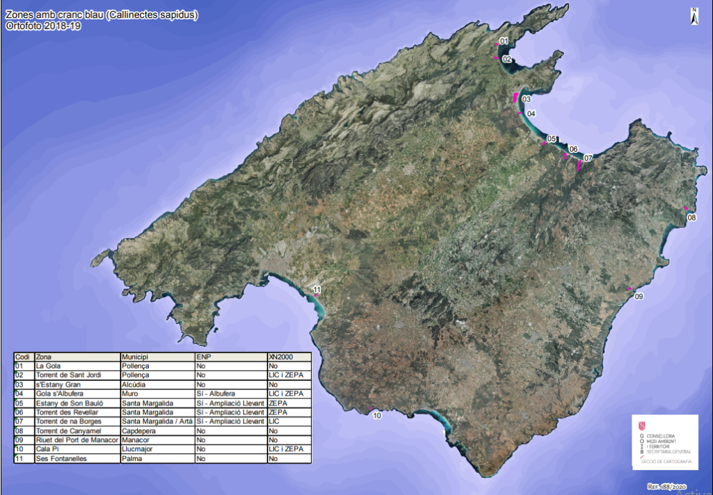 El cranc blau es va detectar per primera vegada a s’Albufera el 2017 i, des de llavors, s’ha estès a diversos punts de Mallorca, incloent Porto Cristo i el torrent de Sant Jordi a Pollença. Entre 2020 i 2024, més de mil pescadors autoritzats han participat en el seguiment i l’extracció d’exemplars, amb prop de 15.000 captures registrades.