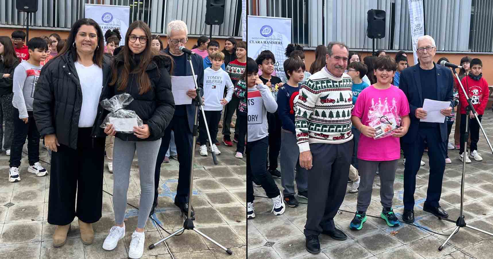 El passat 18 va tenir lloc a l’IES Clara Hammerl l’acte d’entrega de premis del concurs de postals de Nadal, amb els guardons donats per l’Àrea d’Educació, adreçats als alumnes i alumnes guanyadors. Presidiren l’acte la regidora d’Educació, M. José Jiménez, el director de l’IES Mateu Vila i el president de l’A.C. Amics de Sant Antoni, Francisco García, així com també professorat i alumnat del centre.