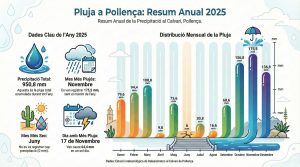 L’any 2025 a Pollença ha estat marcat per una pluviometria molt irregular, amb mesos extremadament secs i episodis de pluja intensa, segons les dades de Balearsmeteo i l’AEMET que repassam a aquest article.