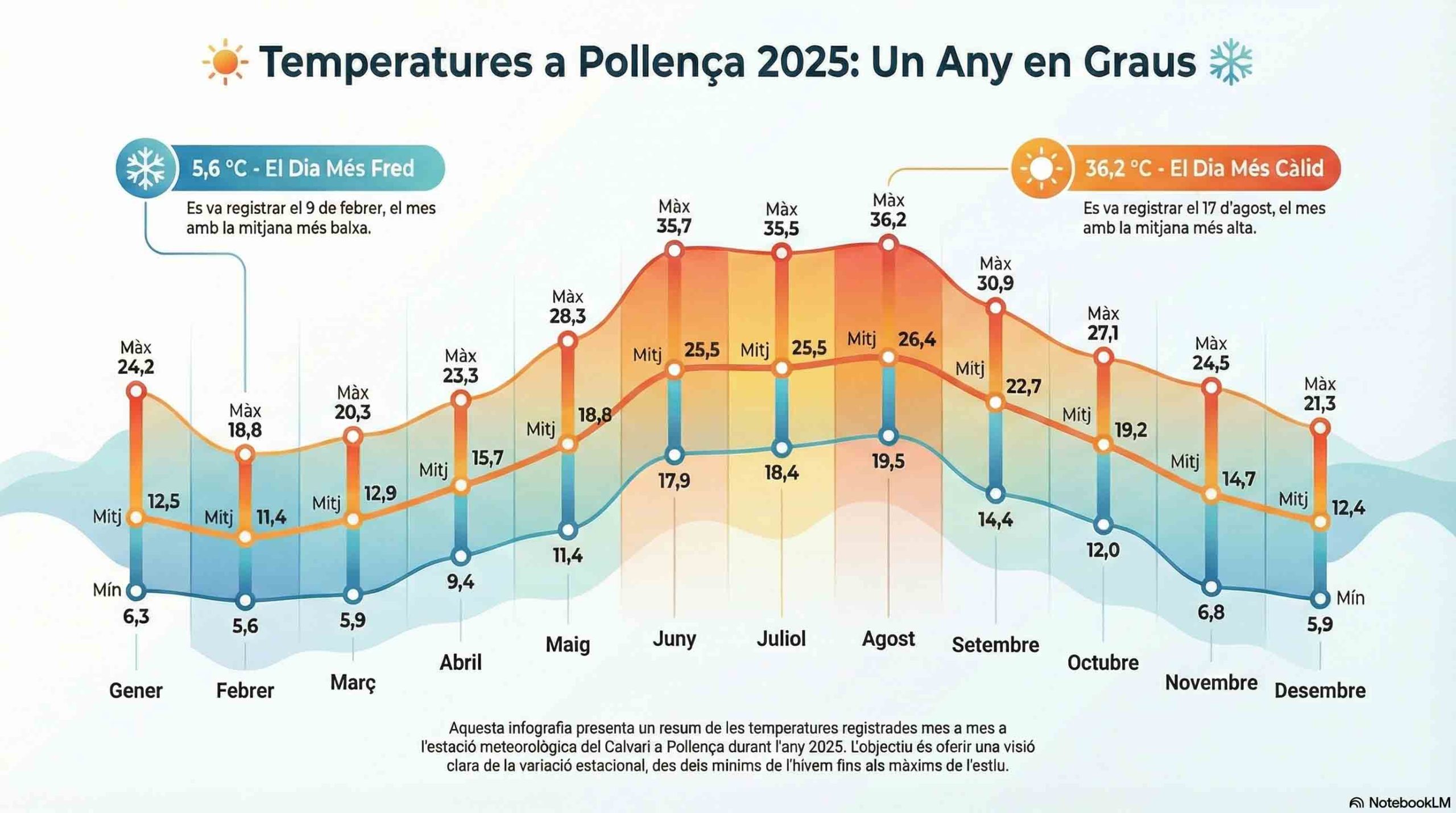 Avui ja s’ha registrat una mínima de 3,3 ºC al Calvari, més baixa que qualsevol del 2025. Repassam com va ser l’any passat pel que fa a les temperatures a Pollença i al Port de Pollença. . .