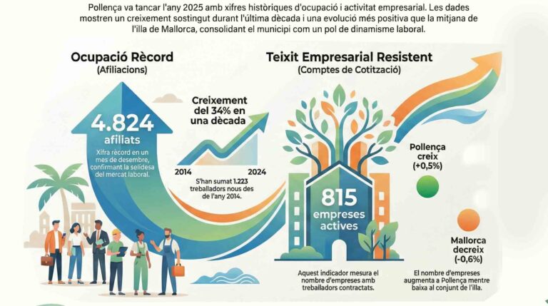 Pollença consolida el seu creixement laboral: el municipi tanca el 2025 amb un rècord històric d’afiliacions en un mes de desembreP+