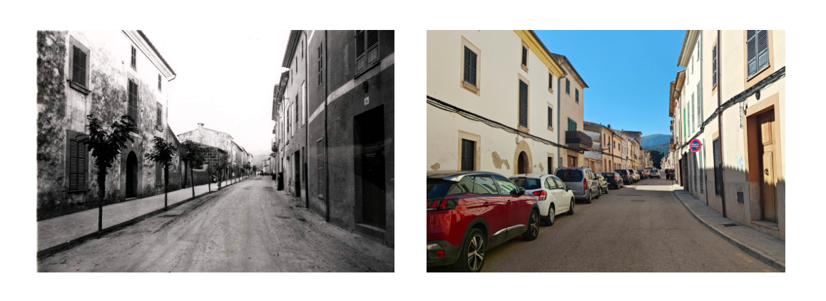 Allà on abans hi havia arbres joves alineats vora la vorera, avui hi ha una successió de carrosseries metàl·liques. No sabem què va ser d’aquells arbres: si desaparegueren amb el temps, si foren arrabassats per les exigències del trànsit i de l’aparcament o si simplement no prosperaren. El que sí és evident és la substitució simbòlica: l’espai de l’ombra i de la pausa ha estat ocupat pel domini del vehicle privat. . .