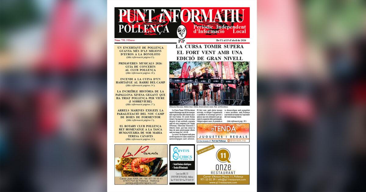 Ja és al carrer el número 731 del Punt Informatiu Pollença, corresponent al període de l’1 al 15 d’abril de 2026. La nova edició de la revista local arriba amb una portada marcada per l’esport de muntanya, però també amb diversos titulars d’actualitat social, cultural i mediambiental que afecten directament el municipi.