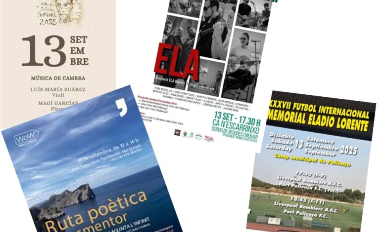 Un any més, Amics de Sant Antoni organitza el Memorial Eladio Lorente. Aquesta vegada els partits de futbol es disputaran a Pollença, perquè el camp d'Albercuix està en obres.