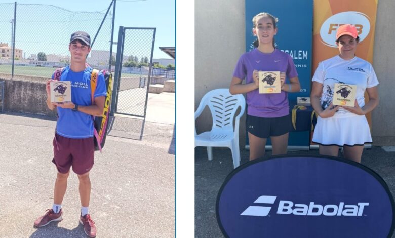 Els tennistes d'Eu Moll Tennis Club, Joan Antoni Plomer i Aina Socias pujaren dalt de tot del podi del Torneig Promoció de Binissalem.