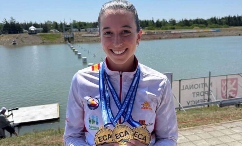 Maria Àngels Moreno fa història al Campionat d'Europa de piragüisme sprint. La palista del Reial Club Nàutic Port de Pollença ha aconseguit tres medalles d’or a Racice (República Txeca)