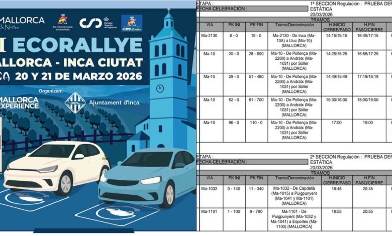 Avui horabaixa, noves restriccions a la carretera de Lluc pel pas de l’Eco Rallye Mallorca – Inca Ciutat. La prova, centrada en l’eficiència energètica, torna a afectar el trànsit del municipi després de setmanes amb diverses competicions esportives.