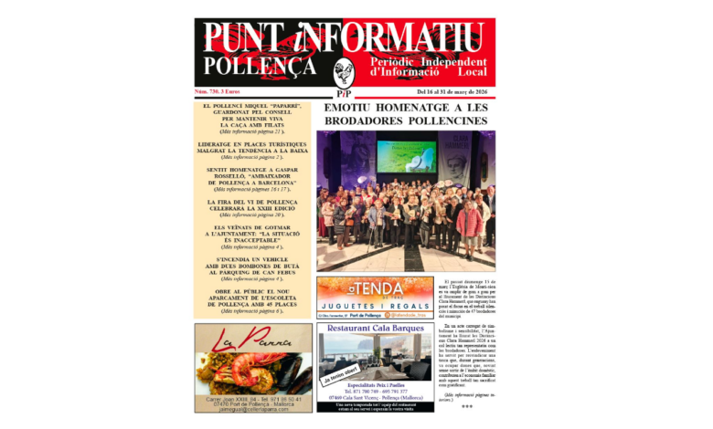 Ja podeu trobar als punts de venda l'edició de la segona quinzena de març. Un número marcat per l'emoció de l'homenatge a les brodadores pollencines. #Pollença #PuntInformatiu #PremsaLocal #CulturaPollencina #FiraDelVi