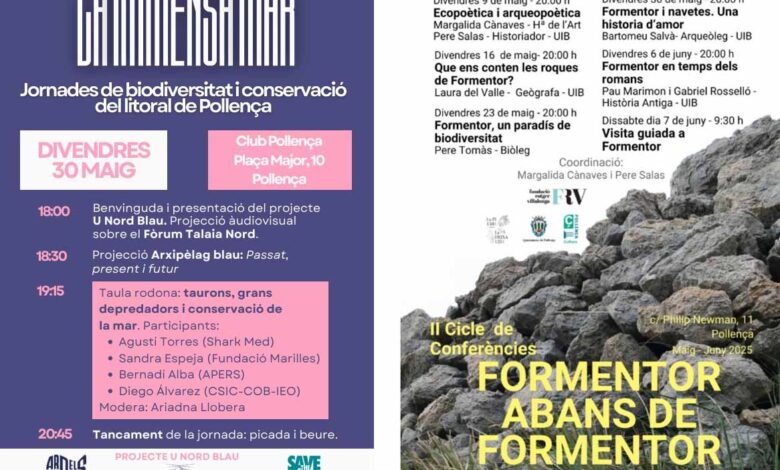 Aquest divendres 30 de maig, Pollença acull dos actes culturals i de divulgació científica que conviden a la reflexió sobre el nostre patrimoni i la conservació del medi marí.