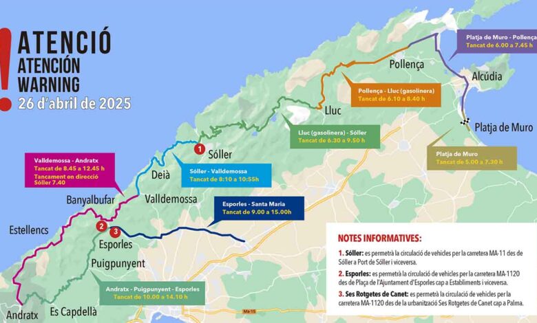 La Mallorca 312 provocarà talls de carretera a Pollença aquest dissabte 26 d’abrilP+