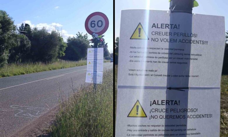 Els missatges alerten del perill que representa aquest tram per als vianants i exigeixen mesures urgents a l’Ajuntament i al Consell Insular