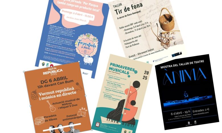 Tast de producte local als Jardins Joan March, taller de tir amb fona al Moll, vermut republicà a Can Bum, Primaveres Musicals al Club Pollença i teatre amb "Ànima" al Saló Cultural del Moll.