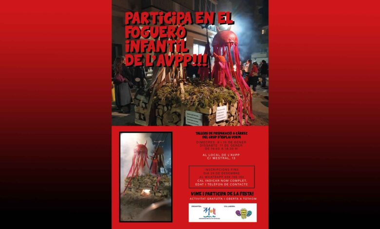 Els tallers es realitzaran els dies 8, 11 i 15 de gener de 2025, en horari de 16:00 h a 18:30 h, al Local Social de l’AVPP