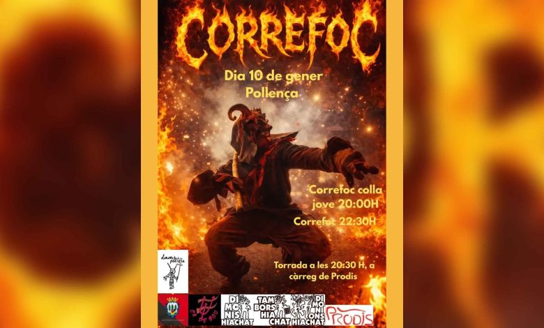 Demà vespre, Sant Antoni viurà un dels correfocs més multitudinaris amb els Dimonis Ca de Bou i colles convidades, amb canvis de recorregut, torrada solidària i un gran desplegament de foc i música.