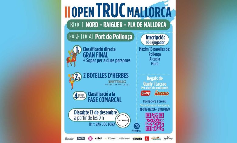 El Port de Pollença acollirà la fase local del II Open de Truc Mallorca, un torneig que recorre tota l’illa